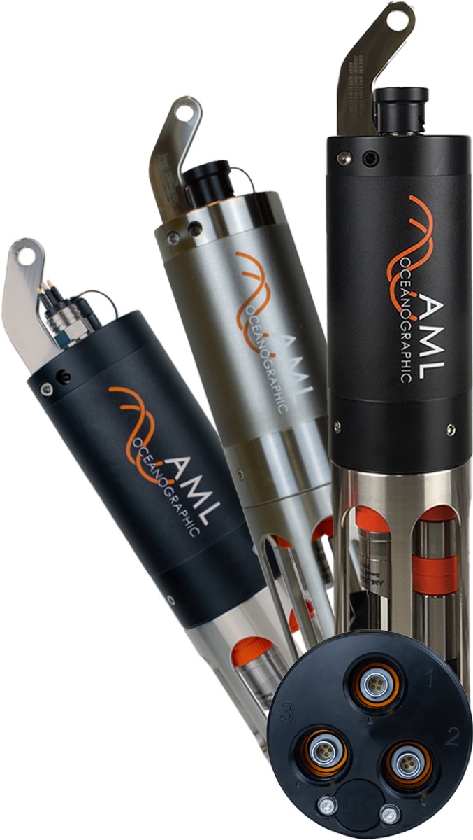 The AML-3 is one of the most versatile, multi-sensor oceanographic instruments currently available. The AML-3 has three sensor ports on the endcap; the sensor payload is modular and can be field-swapped to meet project requirements. Certain sensors such as CT and SVT are dual parameters, thus enabling the direct measurement of up to four distinct parameters from the instrument’s end cap. In addition, the AML-3 calculates salinity and density.