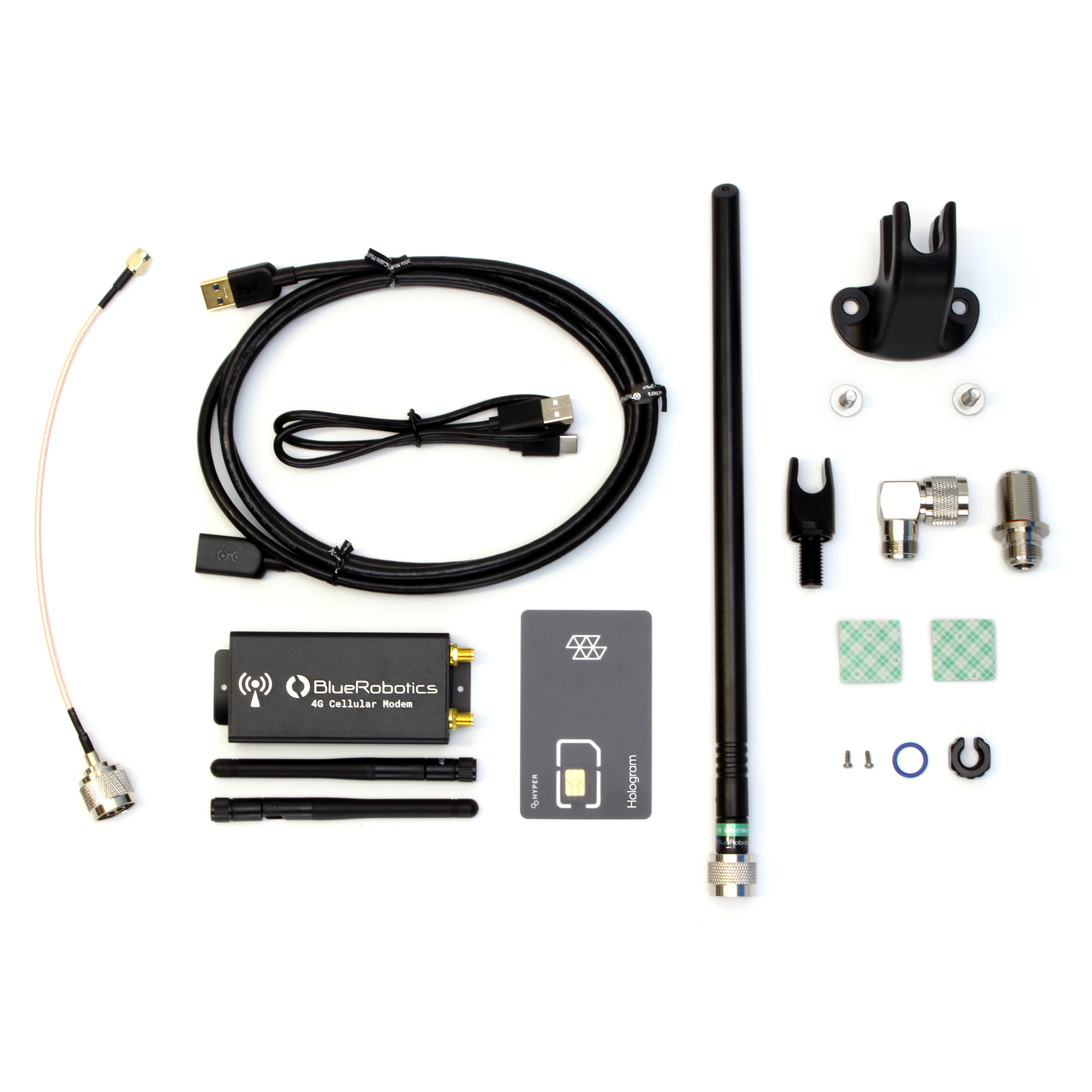 The kit includes all the parts needed for installation on the BlueBoat, and a BlueOS extension is available to easily configure and monitor modem settings directly from the BlueOS interface. The modem itself can also be used to add cellular connectivity to many other types of devices.