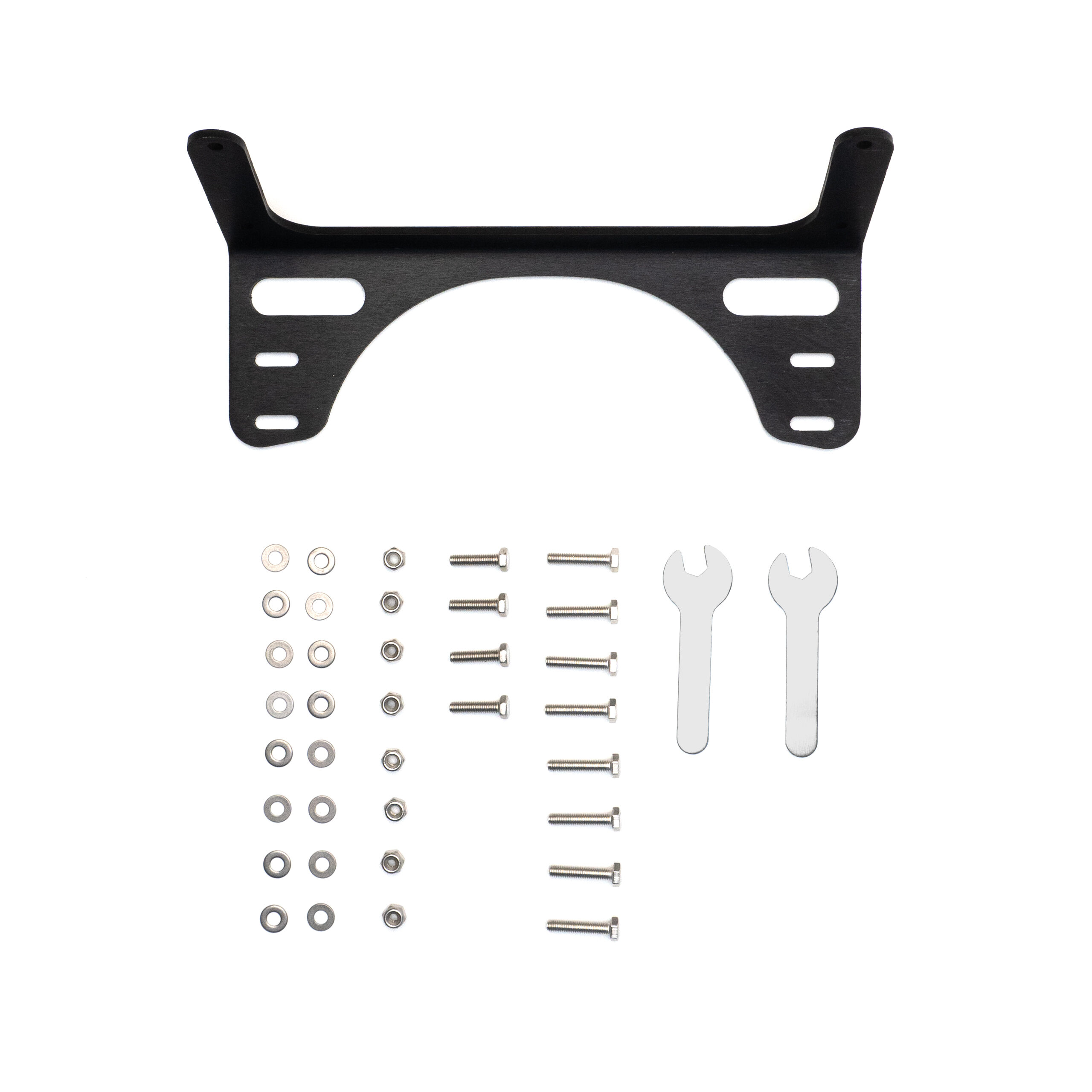 Made from black anodized aluminum, the mounting bracket is lightweight and durable. The bracket and hardware can be used for top or bottom mounting on the BlueROV2. To top mount the sonar you will also need the BlueROV2 Roof Rack. Check out the integration guide for more information.