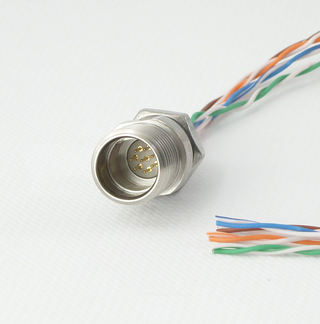 Cobalt connectors achieve a hermetic seal without the need for potting or overmolding, making them more affordable than traditional molded connectors.  The electrical contacts are pressed into a machined PEEK insert, which is in turn pressed into the stainless steel connector shell.