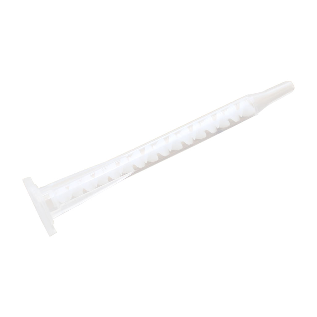 These epoxy mixing tips are used with the Potting Cartridge Dispenser to mix two-part compounds as they are dispensed. This ensures an even mixture and minimal bubbles introduced during the process. The narrow tip can be used to apply the epoxy directly but also fits most “luer” tips for fine epoxy application.