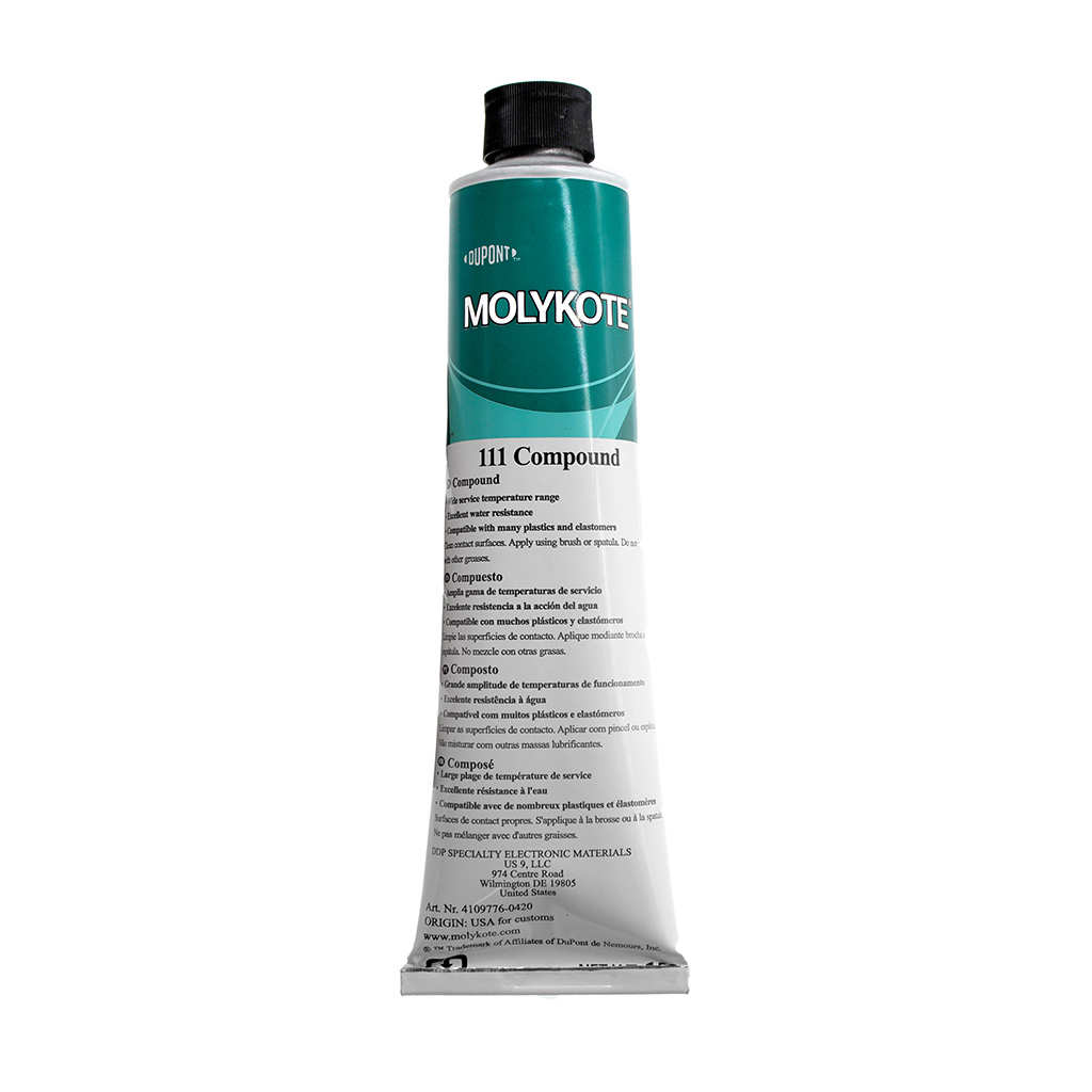 Silicone grease lubricates O-rings and other seals to make sure that they do their job. It helps the rubber slide and fills in any tiny imperfections that might otherwise leak. We’ve evaluated a number of grease options and we’re confident that Molykote 111 is THE grease to use in most situations. It’s compatible with most plastics, has a wide operating temperature range, and is suitable for general purpose use in water.