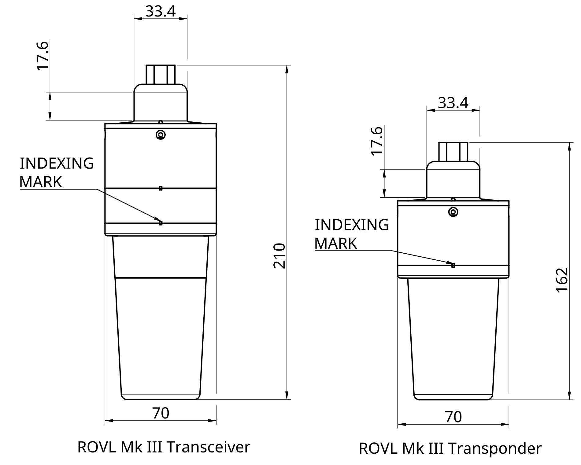 The Mark III, ROV Locator bundle includes a transponder (usually mounted on the ROV or AUV) and a transceiver module (usually located on the surface). It also comes with a mounting ring and adapter for your ROV or AUV. ROV/AUV integration can be as simple as just supplying power from the vehicle battery. You can also add a dedicated battery for the Mark III to track the vehicle in case of primary battery failure. Simply apply power, start the dive and track the ROV location in real-time on a QGroundControl map display or use the free CeruleanMap display software if you don’t want to use QGC. Serial communication to either transceiver or transponder is available, and the open API is documented in the user manual.
