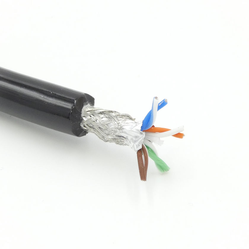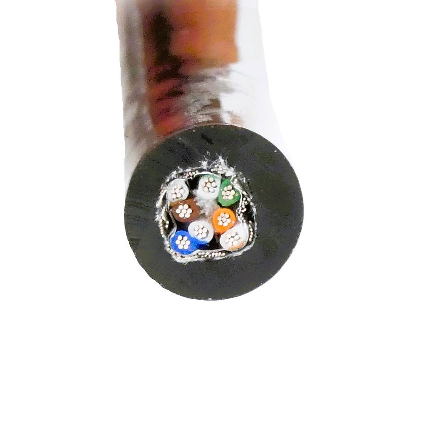 Use this polyurethane-jacketed Cat5e cable together with our 8-pin Cobalt Series Termination Kit to make an underwater ethernet cable of any length. This cable has 8 teflon-insulated 24-AWG wires (4 twisted pairs) with foil and braided shielding. Sold by the meter.