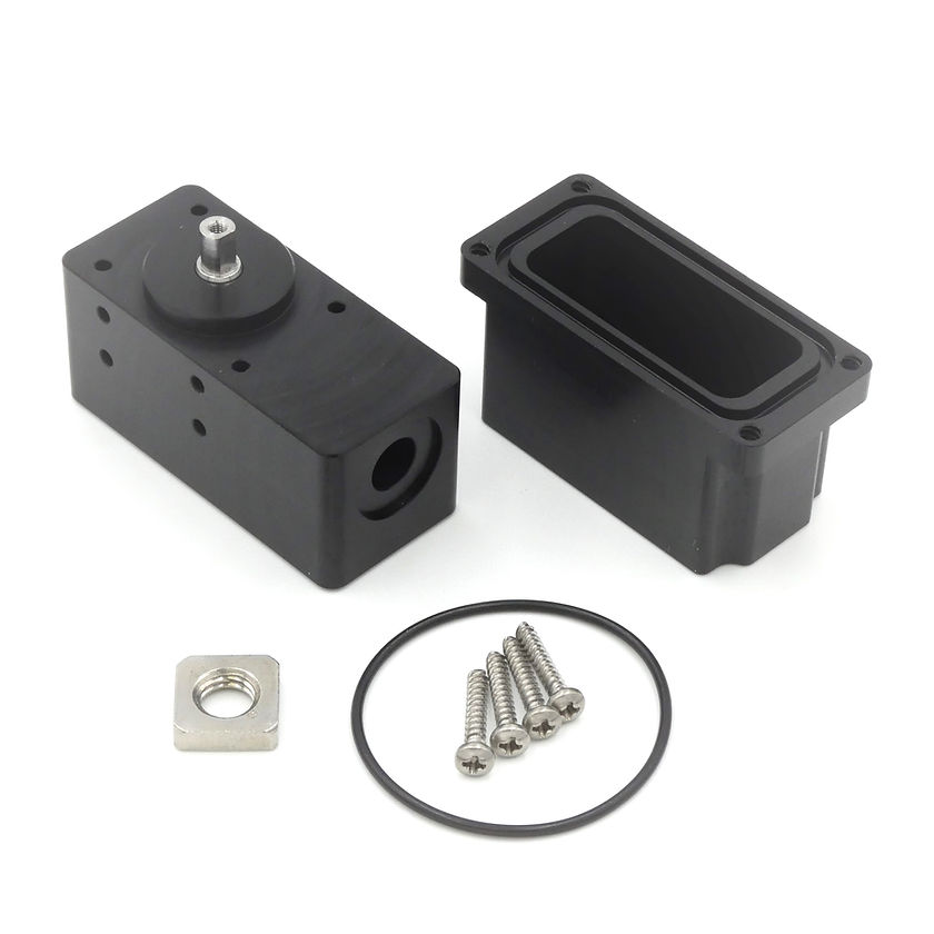 Blue Trail Engineering’s SER-2XXX underwater servos are compact, robust actuators for small marine robotic applications, rated to 200 meters depth with acetal upper and lower case or 400 meters depth with acetal upper case and anodized aluminum lower case. They consist of an off-the-shelf R/C servo installed in a machined enclosure with a titanium output shaft and waterproof connector. By using off-the-shelf R/C servos, this architecture leverages decades of servo development in the R/C industry to provide extremely high reliability as well as almost limitless options for speed, torque, travel distance, and other features.
