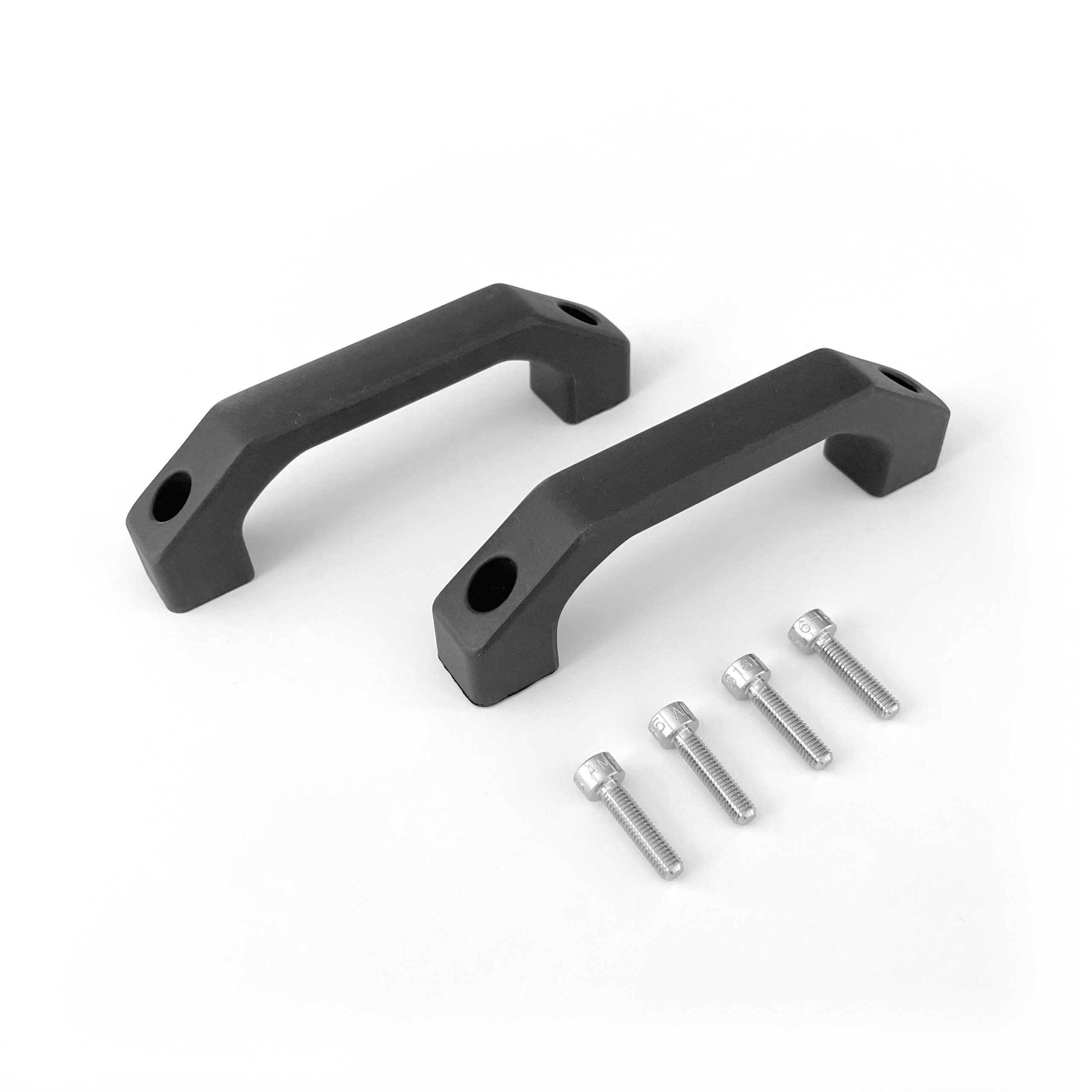 The boxes come with rubber feet and the large box comes with handles for the lid to make it easier to carry and easier to remove.